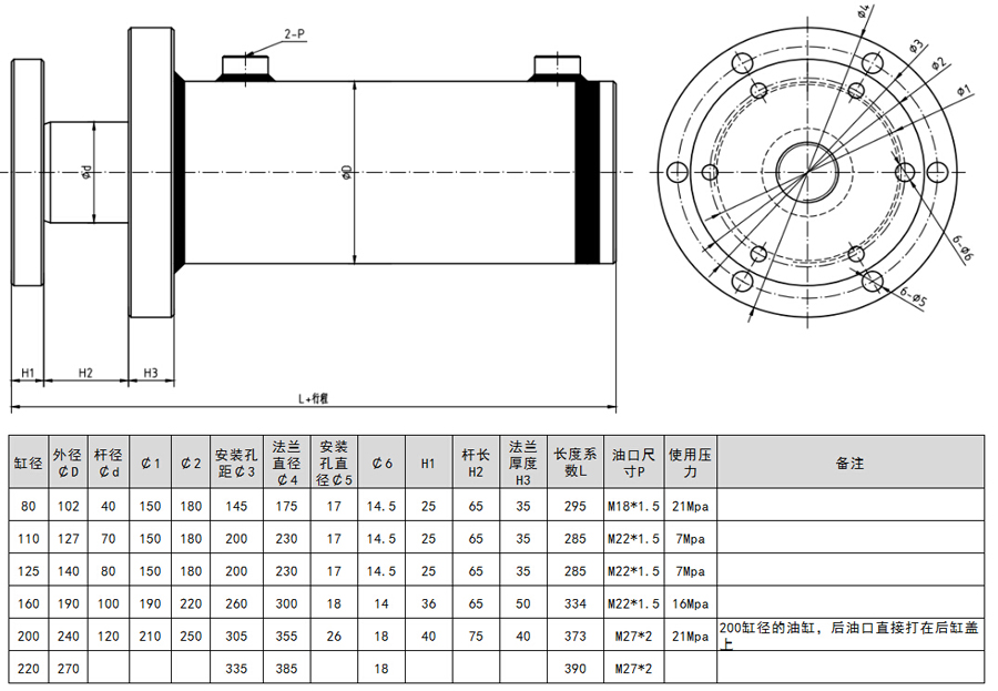 HRO系列焊接油缸,前法蘭安裝