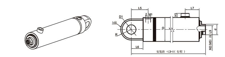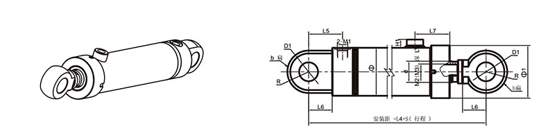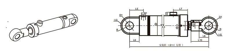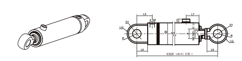 活塞桿端為內(nèi)螺紋桿頭耳環(huán)連接