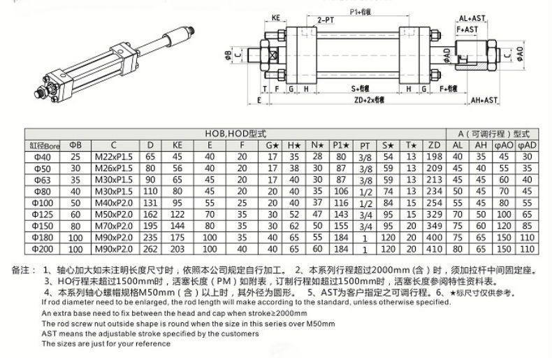 標(biāo)準(zhǔn)HOD+A型 雙軸型附可調(diào)螺帽外形安裝尺寸圖