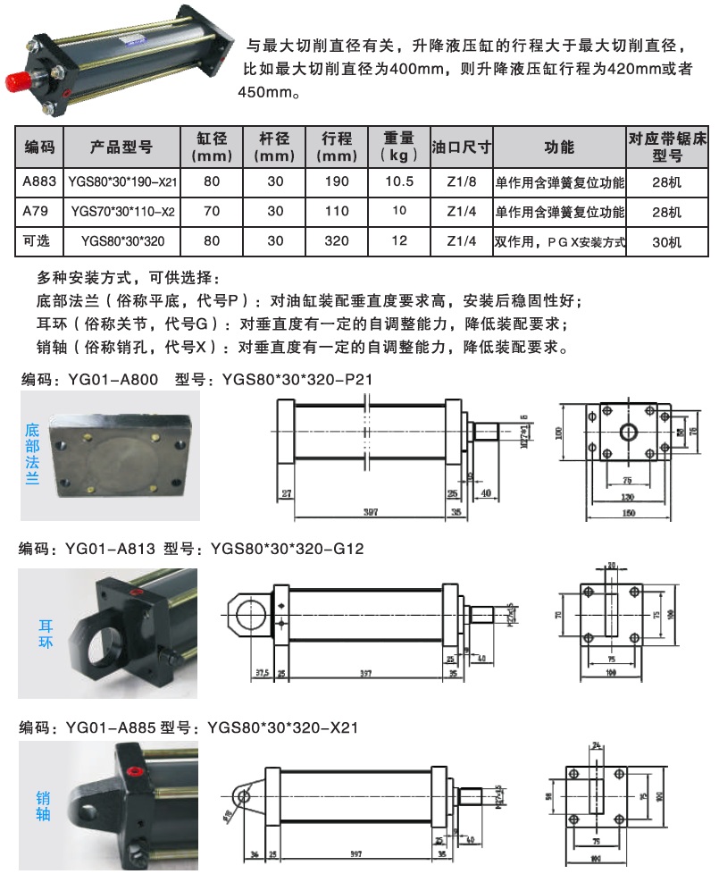 后銷孔安裝升降液壓缸
