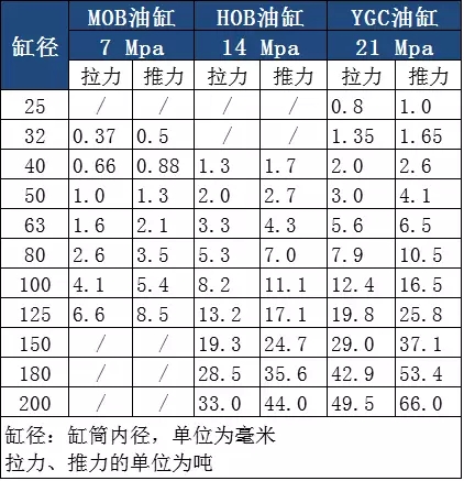 MOB拉桿油缸有定位臺階,HOB與YGC/YGD油缸無定位臺階。