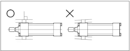 移動中的物品的運動方向必須和活塞桿的運動軸心的方向一致。如果該軸心振動時,會產(chǎn)生襯套早期磨損,甚至缸筒和活塞桿拉缸現(xiàn)象。確認(rèn)該軸心方向不一致的方法是,在安裝油缸時,必須在活塞桿的出桿位置及進桿位置上測定物品安裝部位的芯的偏離值,在對準(zhǔn)芯才將物品與油缸相連接。