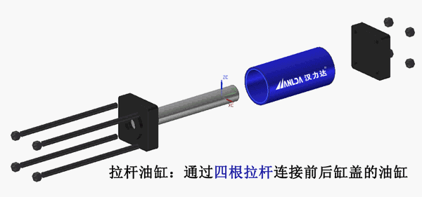 拉桿液壓缸靠螺絲桿連接前后缸蓋,小缸徑時為四根螺絲桿,大缸徑會加多螺絲桿的數(shù)量來保證油缸的耐壓性,比如6根、16根,甚至20根。