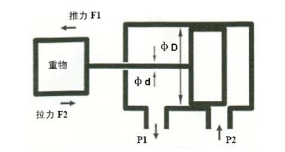 從上面公式可以看出,由于油缸在作推動和拉動時受壓面積不同,故所產(chǎn)生的力也是不同,即: