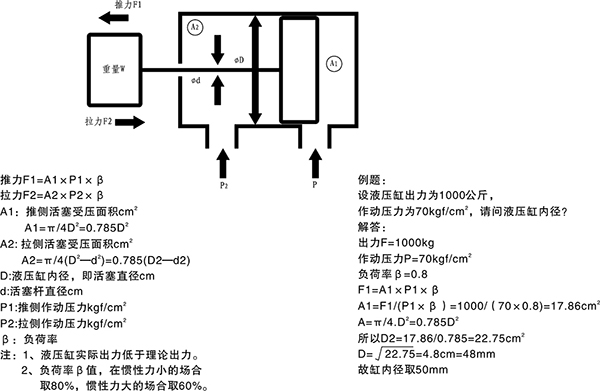 由力的計算公式可知: F = PS(P:壓強; S:受壓面積—由油缸的缸徑、桿徑?jīng)Q定)